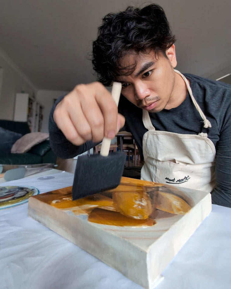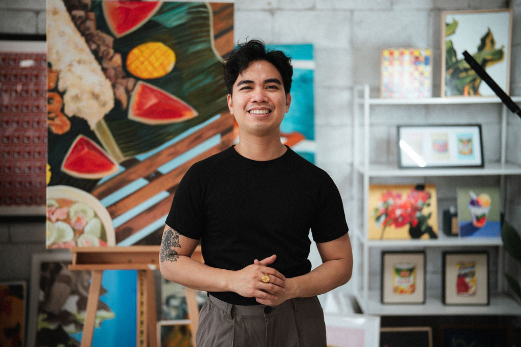 Best known for his finely detailed watercolour, oil, and acrylic works, Peter reimagines Filipino food, objects, and everyday scenes through a nostalgic, modern lens. His paintings explore memory, identity, and cultural connection.